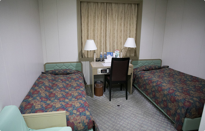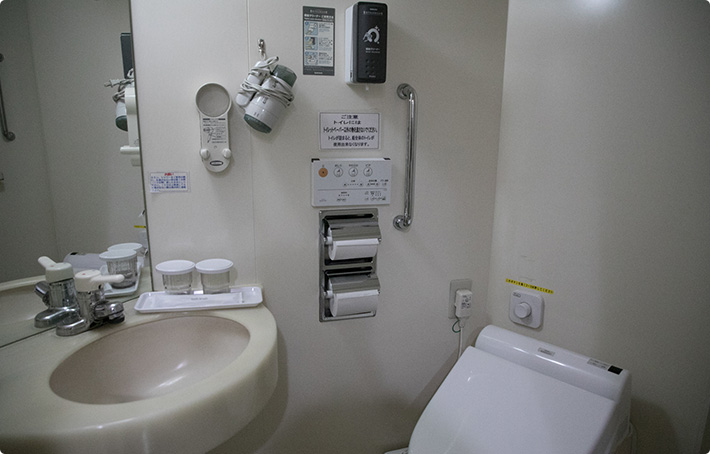 部屋は大部屋タイプか個室タイプにわかれていて、今回は最大3名が宿泊できる個室「デラックスB」(「船に泊まろう」プランの割引料金で片道18,000円~※2017年12月時点))を利用させてもらいました。中は完全にホテルの一室。驚いたことにトイレにはウォシュレットですよ。下手なビジネスホテルよりも圧倒的に快適ですね。