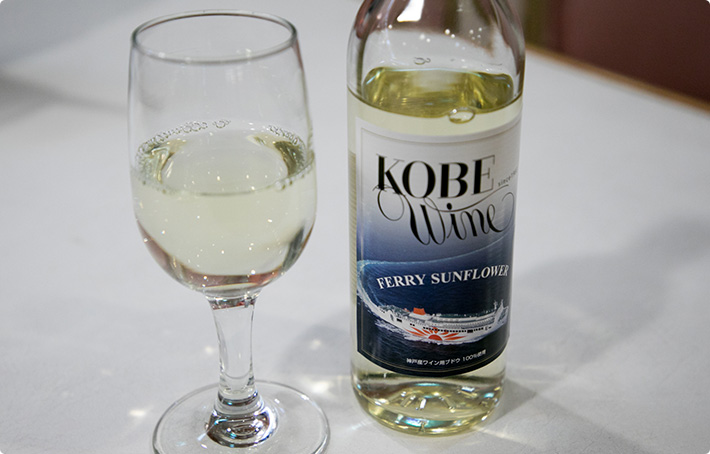 さんふらわあワインなるものもあって、頼んでみました。神戸ワイン謹製のれっきとした国産ワインです。辛口の白で、料理と合わせやすい!