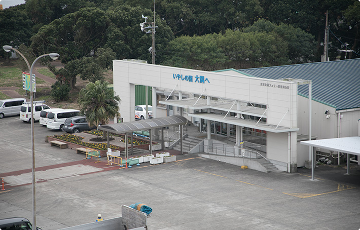 この日の航海は土曜日ダイヤということで、志布志港到着が8時40分頃。予定通りに入港して、スムーズに下船です。なお下船前に部屋の鍵をフロントへ戻すシステムのようですので、お忘れ無く。