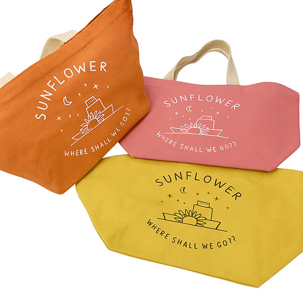 - さんふらわあの太陽マークとかわいらしい船体が印象的なエコバッグ。