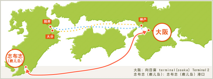 | 出发日 | 大阪→志布志(鹿儿岛) | 志布志(鹿儿岛)→大阪 | ||