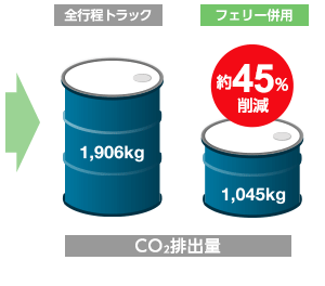 海陸一貫輸送で、全行程トラック輸送に比べ、大幅にCO2を削減します。