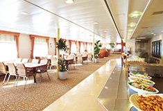 広い船内には大浴場、レストラン、ラウンジ、ランドリー等の施設が完備され、有人トラックの乗務員様には到着までゆったりとお過ごしいただけます。