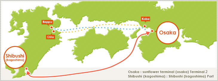 | Day of the week | From Osaka to Shibushi(Kagoshima) | From Shibushi(Kagoshima) to Osaka | ||