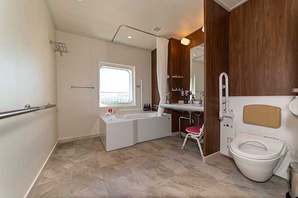 車いす用浴室 ・ トイレ ・ 洗面台 ・ テレビ ・ 冷蔵庫 ・ エアコン(個別) ・ 電気ケトル ・ 空気清浄機 ・ ドライヤー ・ ナイトウェア ・ ハンガー ・ 衣類用消臭剤
