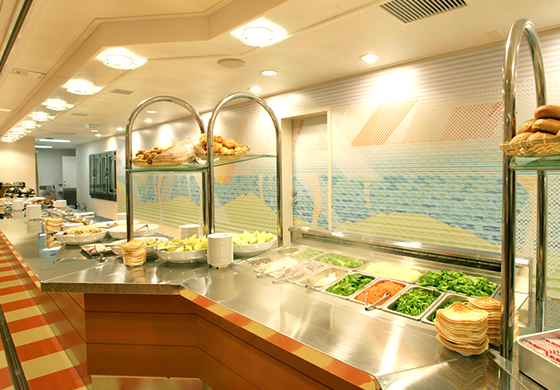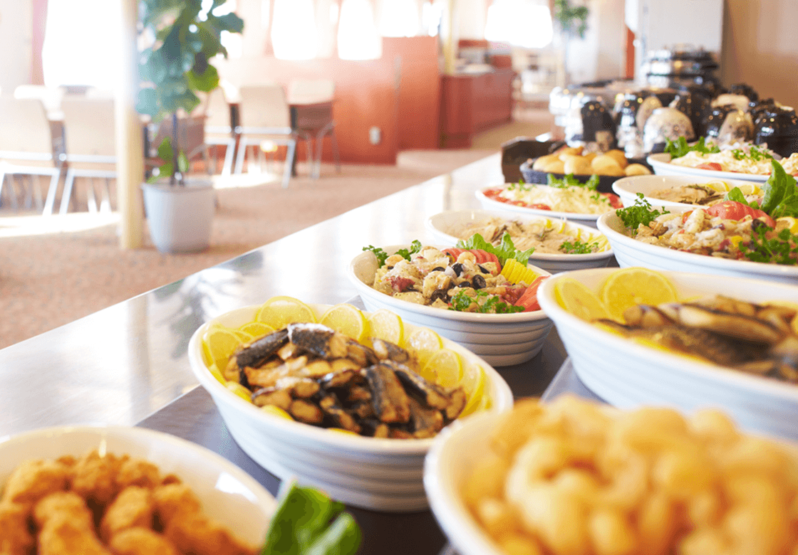 レストランで朝食バイキング。美味しく食べて一日に備えてください。