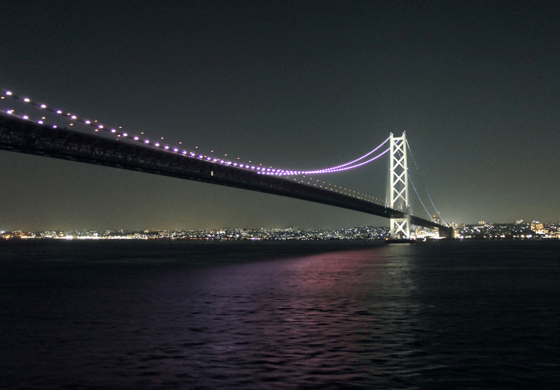 また、ライトアップされた大橋は昼間とまた違った印象で、闇夜を進む私たちを鮮やかに照らしてくれます。 -