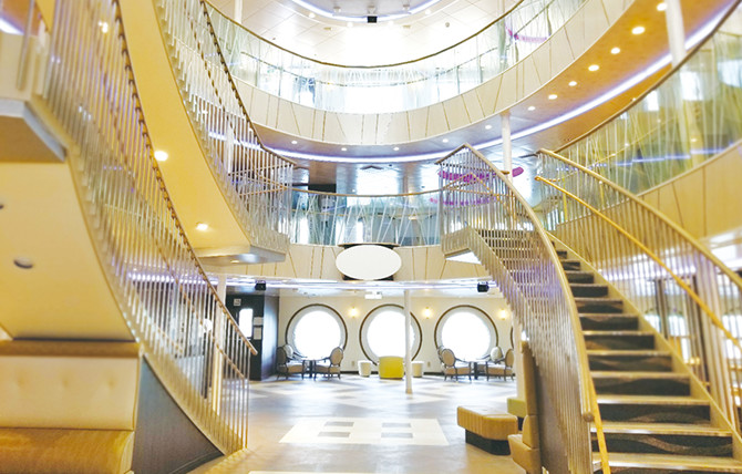 3フロア吹き抜けのエントランスホール内にあるアトリウムをはじめ、明るく開放的なパブリックスペース。丸窓から眺める太平洋は絶景です。