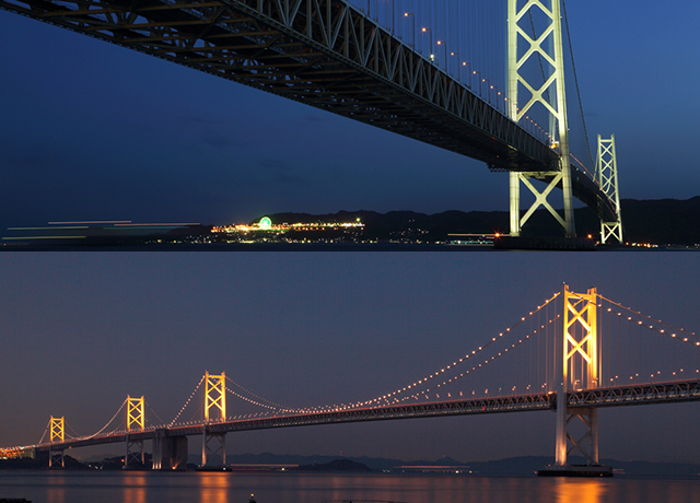 大阪~別府航路、神戸~大分航路では明石海峡大橋、瀬戸大橋、来島海峡大橋の3つの橋を通過します。陸上から見ることのできない橋の下からの眺めは圧巻です。