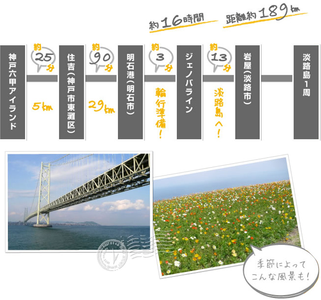 神戸(須磨)から明石にかけては、海沿いを走り、明石にて、明石焼き、海の幸を堪能できます。