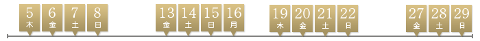 1月 2月 3月 4月 5月 6月 7月 8月 9月 10月 11月 12月 船内イベントスケジュール 2019年9月 日にちを選択してください 9月5日(木) 9月6日(金) 9月7日(土) 9月8日(日) 9月13日(金) 9月14日(土) 9月15日(日) 9月16日(月) 9月19日(木) 9月20日(金) 9月21日(土) 9月22日(日) 9月27日(金) 9月28日(土) 9月29日(日) ※出演者の写真をクリックするとプロフィールがご覧いただけます。 9月5日(木) 二胡 木塲孝志 9月6日(金) JAZZ 山本佳史(Gt)、井上知樹(Gt) 9月6日(金) パフォーマンス どりんちゃん 9月6日(金) エンジョイコンサート 大鶴 華子(フルート)、五藤 由香理(ピアノ) 9月6日(金) パフォーマンス 真流手ナオト 9月6日(金) さんふらわあ クラシック音楽の夕べ柳原史佳(ヴァイオリン奏者) 9月6日(金) ミニライブ藤井恵(シンガーソングライター) 9月6日(金) 二胡 木塲孝志 9月7日(土) パフォーマンス 真流手ナオト 9月7日(土) エンジョイコンサート 大鶴 華子(フルート)、五藤 由香理(ピアノ) 9月7日(土) パフォーマンス どりんちゃん 9月7日(土) JAZZ 山本佳史(Gt)、井上知樹(Gt) 9月7日(土) 船上ヨガ 9月7日(土) さんふらわあ クラシック音楽の夕べ柳原史佳(ヴァイオリン奏者) 9月7日(土) ミニライブ藤井恵(シンガーソングライター) 9月8日(日) 船上ヨガ 9月13日(金) 三世代ミュージックアートフェスティバル MASAHARUほっこりペイント 9月13日(金) パフォーマンス どりんちゃん 9月13日(金) エンジョイコンサート 加那(琉球民謡) 9月13日(金) パフォーマンス 真流手ナオト 9月13日(金) 二胡 木塲孝志、上河内美里、田中亜莉紗 9月13日(金) 熱帯低気圧接近による海上荒天の可能性のため中止 9月14日(土) パフォーマンス 真流手ナオト 9月14日(土) エンジョイコンサート 加那(琉球民謡) 9月14日(土) パフォーマンス どりんちゃん 9月14日(土) 三世代ミュージックアートフェスティバル MASAHARUほっこりペイント 9月14日(土) ミニライブYoko* 9月14日(土) 熱帯低気圧接近による海上荒天の可能性のため中止 9月14日(土) 熱帯低気圧接近による海上荒天の可能性のため中止 9月15日(日) 敬老の日スペシャル 全力応援!!立命館大学応援団チアリーダー部 9月15日(日) 熱帯低気圧接近による海上荒天の可能性のため中止 9月15日(日) 熱帯低気圧接近による海上荒天の可能性のため中止 9月16日(月) ミニライブYoko* 9月16日(月) 熱帯低気圧接近による海上荒天の可能性のため中止 9月19日(木) 二胡 木塲孝志 9月20日(金) JAZZ 古山晶子(Ts)、太田健介(Tb)、森下周央彌(Gt) 9月20日(金) 台風17号接近に伴い中止 9月20日(金) 三世代ミュージックアートフェスティバル 世界民族音楽紀行【津軽三味線&ホルン】 9月20日(金) 台風17号接近に伴い中止 9月20日(金) 台風17号接近に伴い中止 9月20日(金) 台風17号接近に伴い中止 9月21日(土) 台風17号接近に伴い中止 9月21日(土) 三世代ミュージックアートフェスティバル 世界民族音楽紀行【津軽三味線&ホルン】 9月21日(土) 台風17号接近に伴い中止 9月21日(土) JAZZ 古山晶子(Ts)、太田健介(Tb)、森下周央彌(Gt) 9月21日(土) 台風17号接近に伴い中止 9月22日(日) 台風17号接近に伴い中止 9月23日(月) 台風17号接近に伴い中止 9月27日(金) ギター弾き語り サザキヒロシ 9月27日(金) クラシックコンサート 本田ゆりこ、穴井由香里 9月27日(金) パフォーマンス 大道芸人ジム 9月27日(金) 船上ヨガ 9月27日(金) 第3回さんふらわあ大學「古今東西!世界!不思議!発見!『研究』ってこんなにおもしろい!」立命館大学 石田明先生 9月28日(土) パフォーマンス 大道芸人ジム 9月28日(土) クラシックコンサート 本田ゆりこ、穴井由香里 9月28日(土) ギター弾き語り サザキヒロシ 9月28日(土) 三世代ミュージックアートフェスティバル MASAHARUほっこりペイント 9月28日(土) 船上ヨガ 9月28日(土) 第3回さんふらわあ大學「古今東西!世界!不思議!発見!『研究』ってこんなにおもしろい!」 立命館大学 石田明先生 9月29日(日) 三世代ミュージックアートフェスティバル MASAHARUほっこりペイント ※本イベントは、予告なく時間場所等変更される場合、やむを得ず中止になる場合がございます。ご了承の程お願い申し上げます。 2020年開催のイベントはこちらからご覧ください