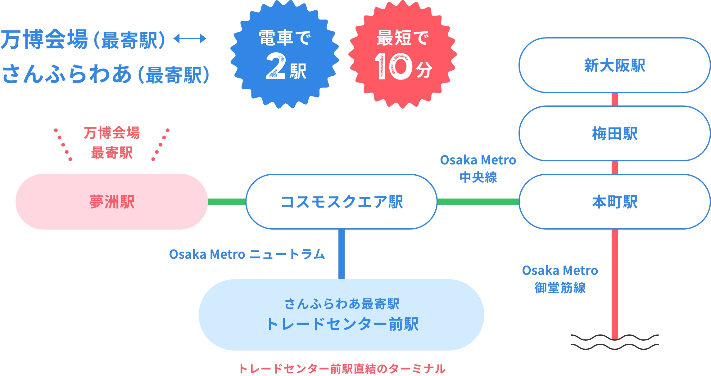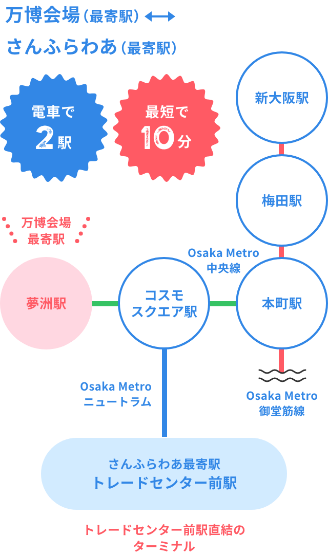 万博会場からさんふらわあまでは、電車で
