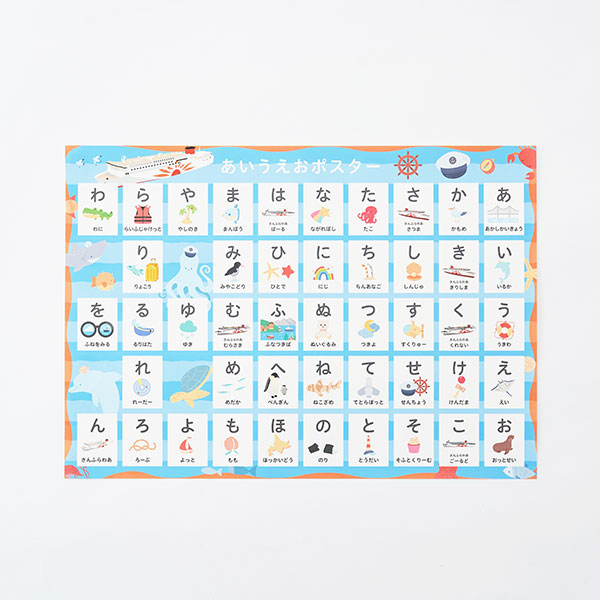 - お風呂の壁に貼って使えるさんふらわあオリジナルの「あいうえおポスター」