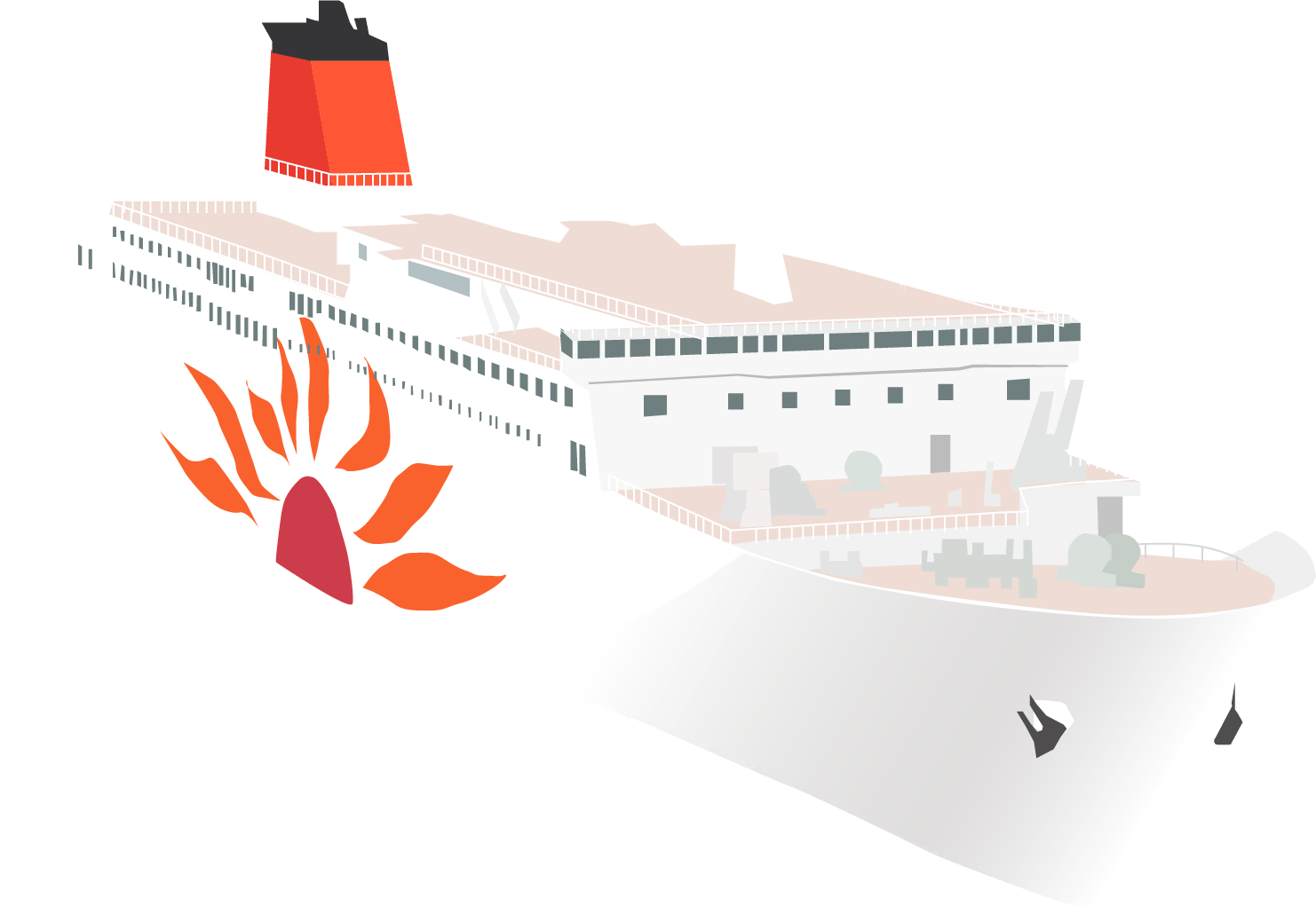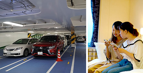 バスや乗用車を積み込み、船内客室は個室を利用することで自分時間を楽しめる!