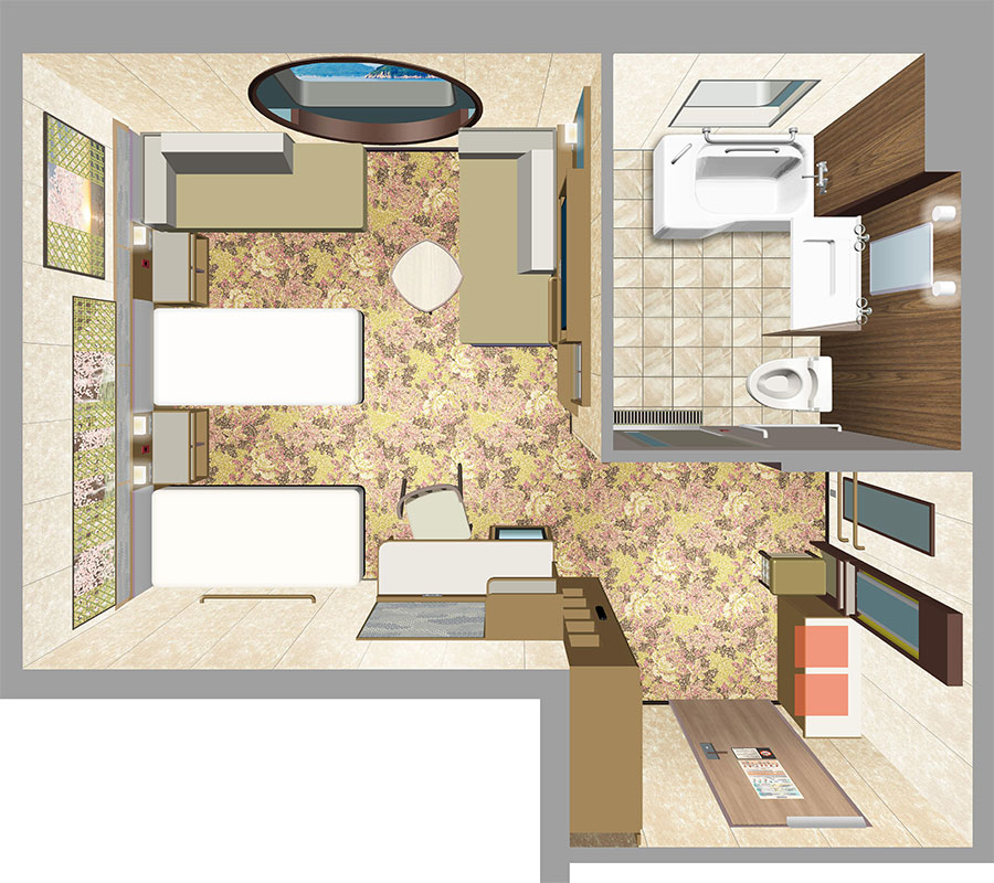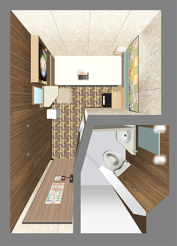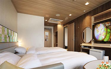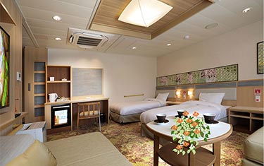 - ハンガー ・ ナイトウェア ・ スリッパ ・ ティッシュ ・ ゴミ箱 ・ 歯ブラシ ・ コップ ・ 除菌消臭スプレー ・ バスマット ・ バスタオル ・ フェイスタオル ・ サービスタオル ・ ハンドソープ ・ シャンプー ・ コンディショナー ・ ボディソープ ・ 茶器セット ・ ミネラルウォーター
