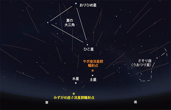 7月末は、複数の流星群の出現が重なり、流星が見られやすい時期です。7月28日にみずがめ座δ(デルタ)流星群が、7月31日にやぎ座流星群がそれぞれピークを迎え、8月のペルセウス座流星群の流星もときどき見られるからです。
