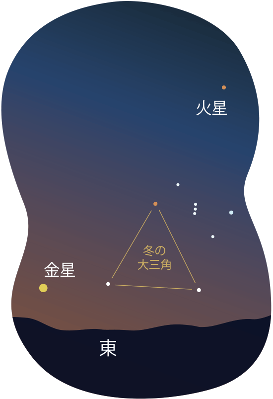 明け方の空に輝く明星たち