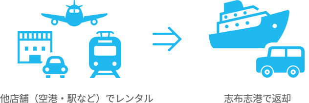 3.他店舗(空港・駅など)で借りたレンタカーを港に乗り捨てができます。