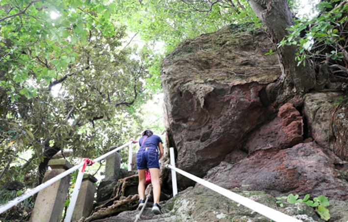 ちなみに鳥居をくぐって神社にたどり着くには簡単な岩場をよじ登る必要があるので、フラットシューズをお忘れなく。祭神は菅原道真公。