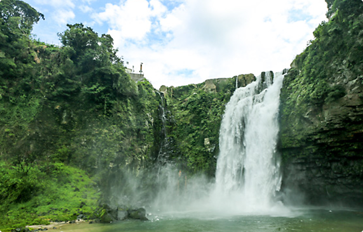 大隅半島のシンボル的存在の雄川の滝(おがわのたき)は駐車場から滝まで徒歩で片道20分ほどの場所にある、よく晴れた午前中の滝はエメラルドグリーンに輝くため息ものの美しさのネイチャースポット。しかも無料です。