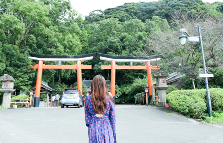 全国的にも珍しいというふたつの鳥居が並ぶ神社は地元の縁結びスポット。左の鳥居から入って、右の鳥居から出るのがポイントで恋人同士で訪れるとご利益がありそう。わたしたちは勝手に双子の鳥居と呼んでいました。雄川の滝からわりと近い場所にあるので、セットで立ち寄るといいかも。大隅らしい素敵な写真が撮れますよー!