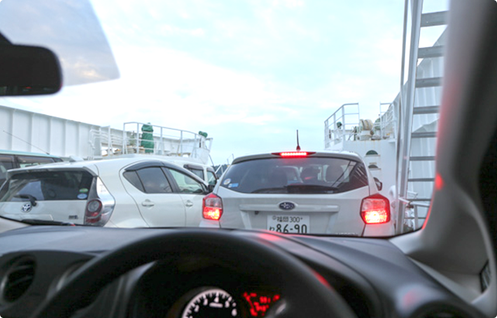 フェリーで車ごと移動したい場合は、数に限りがあるので予約は必須。時間より早めに港にたどり着いたら、料金を支払って港付近の堤防からの眺めを地元の小学生と一緒に眺めてみたり、写真を撮ったりして大隅の旅を振り返る幸せな時間をどうぞ。