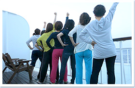 3泊4日の女子会7人旅は、フェリーさんふらわあで神戸港から出発です。いざ出航~!!