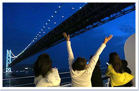 20時に明石海峡大橋の下をくぐるぅ~