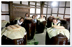 小手川酒造では、出来たてホヤホヤの酒饅頭を食べて焼酎の蔵見学・・・