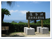 JR最南端の駅西大山駅や池田湖のお土産屋で大うなぎを見学後、フェリーで大隅半島へ渡る。目指すは本土最南端、佐多岬である。岬の先っぽに近づくにつれ、サルの集団が闊歩している。コワイコワイ。おまけに何かわけのわからない気根を垂らした大木が生えていて気味が悪い。実はこれ、ガジュマルの木だそうだ。神様が宿る木なのだ。