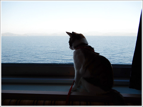 フェリー内を散策したり、デッキで海を眺め、猫と共に旅をするこんな夢のような旅ができるようになるとは想像もしていませんでした、まさに一泊のプチクルーズです。