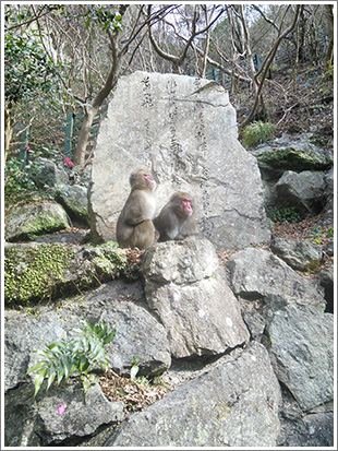 ベンチで休みながら、夏に訪れたら涼しいだろうなぁ、秋に来たら紅葉がきれいだろうなぁと想像していると、野生のニホンザルが近くで休憩していた観光客のカバンの中からビニル袋を奪って逃亡。滝道では持ち物に気をつけないといけないようです。
