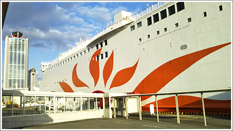 今回のフェリーは新造船ということもあって、大阪南港へ着くなり「わあー大きくてきれい」しかも初めてのスイート客室と乗船前から気分が高揚していました。