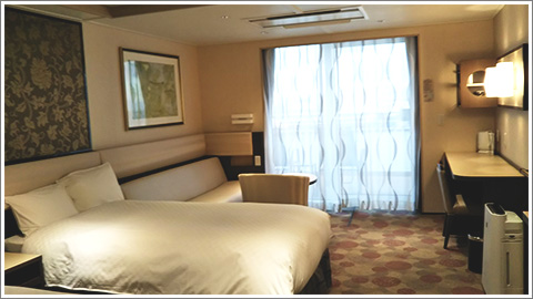 カードキーをノブの部分にかざしていざ入室、部屋は、12畳程度と広く三人余裕で宿泊できそうです。