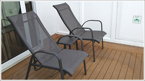海側にはバルコニーがありイスとテーブルが用意されています。