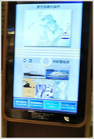もうお腹いっぱいで船内を探索、インフォメーションがタッチパネルになっていて新しい感じ、内容はもう少し詳しくなるといいですね。たとえば現在どのあたりを航行しているかがわかると、窓の外の明かりから場所のおおまかな特定ができ旅心をそそられるのですが。