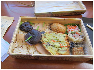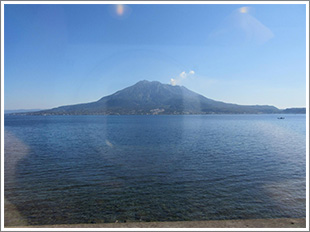 マイクロバスで嘉例川駅に戻る。この駅舎は明治36年に建立され、100年を超える歴史のあるもので、ノスタルジーを感じる。早速、楽しみにしていた駅弁「百年の旅物語 かれい川」を購入。特急「はやとの風」号がちょうど到着し、名誉駅長と記念写真。あっという間のひと時だったが、このあと小一時間「はやとの風」に揺られる。運よく空いていた展望スペースに陣取り、先ほどの駅弁を開く。地元でとれた食材を使った鹿児島郷土料理。ガネやコロッケ、炊き込みご飯の椎茸がとてもおいしい。まずは焼酎を飲みながら、おかずをつまむ。昼間からお酒を飲んで、美味しいものを食べて、車窓を楽しむこの贅沢。日豊本線に入ると、きれいな桜島も見えてきた。高速道路よりも海岸沿いを通るので、ほろ酔い気分も手伝って、より楽しめる。13時前鹿児島中央駅着。あっという間の風列車の旅は終わる。もう少しゆっくり走ってくれてもいいのに、特急だけど。