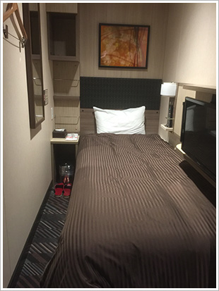 帰路のフェリーは四千円の追加料金を払ってプライベートシングルにランクアップ。プライベートベットと比較すれば天地寸法方向に広々としている上に,僅か千円の追加で利用できるので,こちらを選んだ次第です。実際に利用すると,寝ながらにして利用できるテレビもあるし,着替えも便利で十二分に快適でした。こちらもツーリスト同様,パブリックスペースのホールに近いのも良かったです。