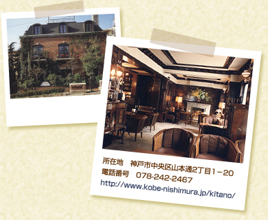 1974年に日本初の会員制喫茶店として開店し、各界著名人なども数多く訪れたが、95年の阪神大震災を期に一般に開放した特別なにしむら珈琲店です。蔦の絡まる赤煉瓦の建築は、上海の英国風洋館をモチーフにしたもので、今では北野坂のランドマークとなっています。 アンティークに囲まれた優雅な店内では、カフェ・レストランとして、ランチやディナーといった時間帯を問わない自由なシチュエーションで本格的なお食事をお楽しみ頂けます。