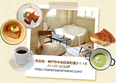 神戸・栄町にあるフランスの屋根裏部屋をイメージしたカフェと雑貨のお店です。オフホワイトを基調にした、やさしい雰囲気のカフェでは、コーヒー・紅茶・チャイやジュース、アルコールなど、たくさんの種類の飲物と、ランチセットやクスクス、また種類豊富なこだわりのケーキを、リラックスしながら楽しめます。