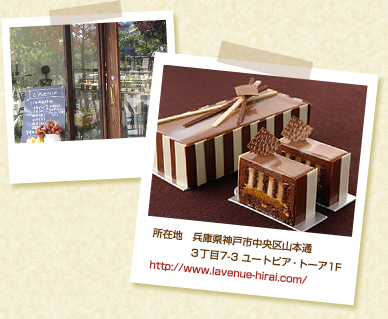 ワールドチョコレートマスターズ2009(世界唯一のチョコレートの世界大会)で優勝し、11年にはフランスのチョコレートメーカー・カカオバリーのアンバサダーに任命された平井茂雄氏が、12年春に、神戸・北野にオープンした自身のショップ。気品のあふれる店内で販売しているチョコレートやケーキはどれも絶品です。