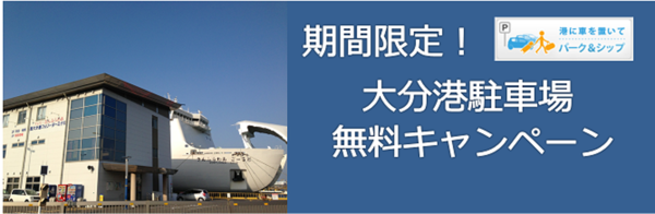 大分港からご乗船のお客様へ、駐車場を無料でご利用いただけるキャンペーンを実施中です!