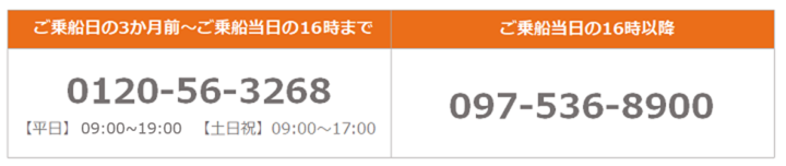 ※当日16時以降は空きがございましたら、大分港のりば窓口にて受付いたしますのでお申し出ください。
