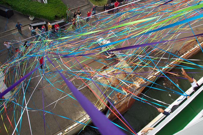 「初体験のテープ投げ。これから始まるクルーズに期待が高まる。」