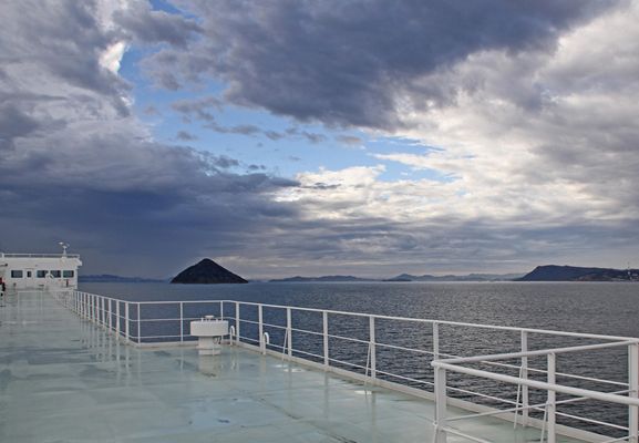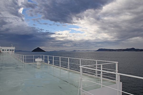 「当日は、生憎雨の中の出港で雲の多い航海になりましたが、途中雨があがって青空が覗いた一瞬の清々しさを狙ってみました。」