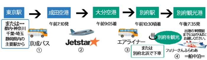 例えば・・・関東発 おんせん県おおいたで観光+食いだおれのまち大阪を観光!