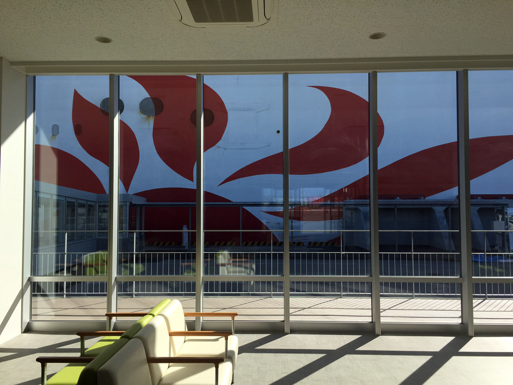 *海側がガラス張りなのでお見送りも快適! 新ターミナルの外観は、海側がガラス張りになっており、停泊中の本船が一望できる開放的な造りとなっていて、お見送りも快適にできます。 |