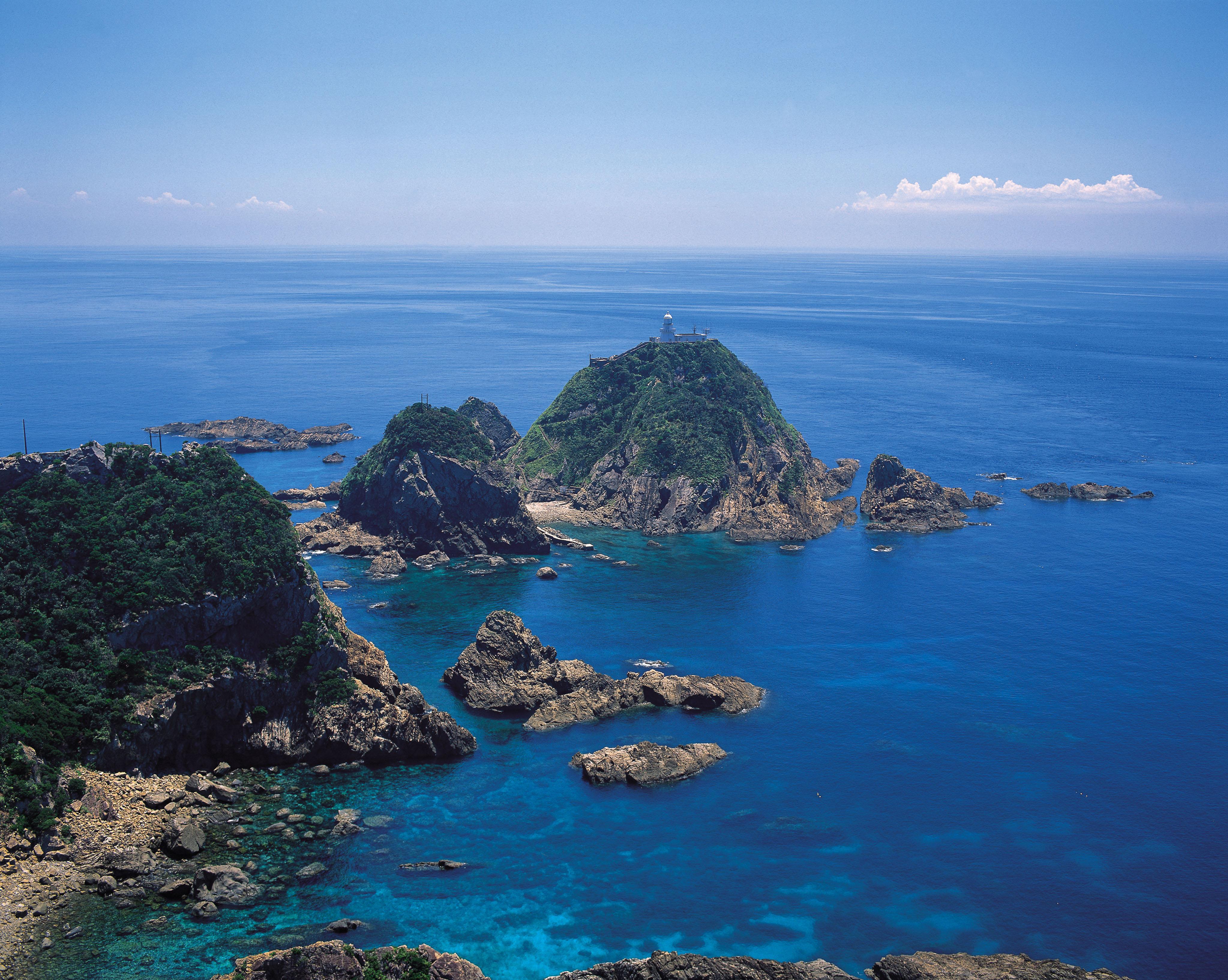 南端の断崖から50メートル沖の大輪島に日本最古の灯台の1つ「佐多岬灯台」があります。