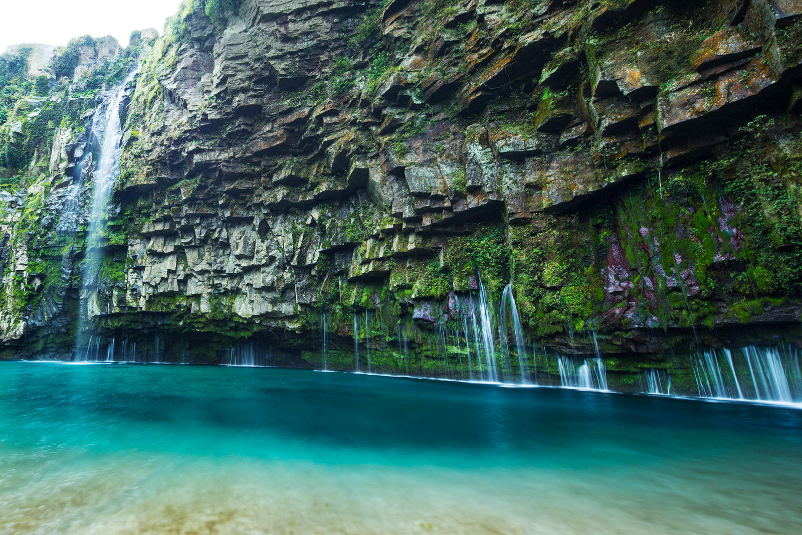南大隅町の根占地区を流れる雄川上流にある落差46m、幅60mの滝です。