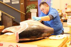 できるだけ自然に近い状態で育てた上質なクロマグロは職人の洗練された手さばきによっておいしいお刺身に変身します。